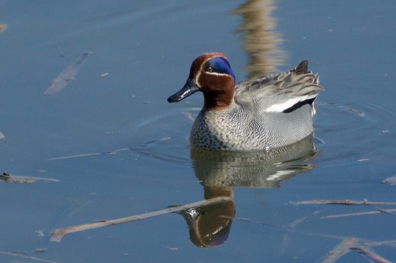 La semana pasada se podían ver unas cuantas cercetas comúnes, es un pato muy vistoso en el caso de los machos, por la coloración. La cabeza es de un